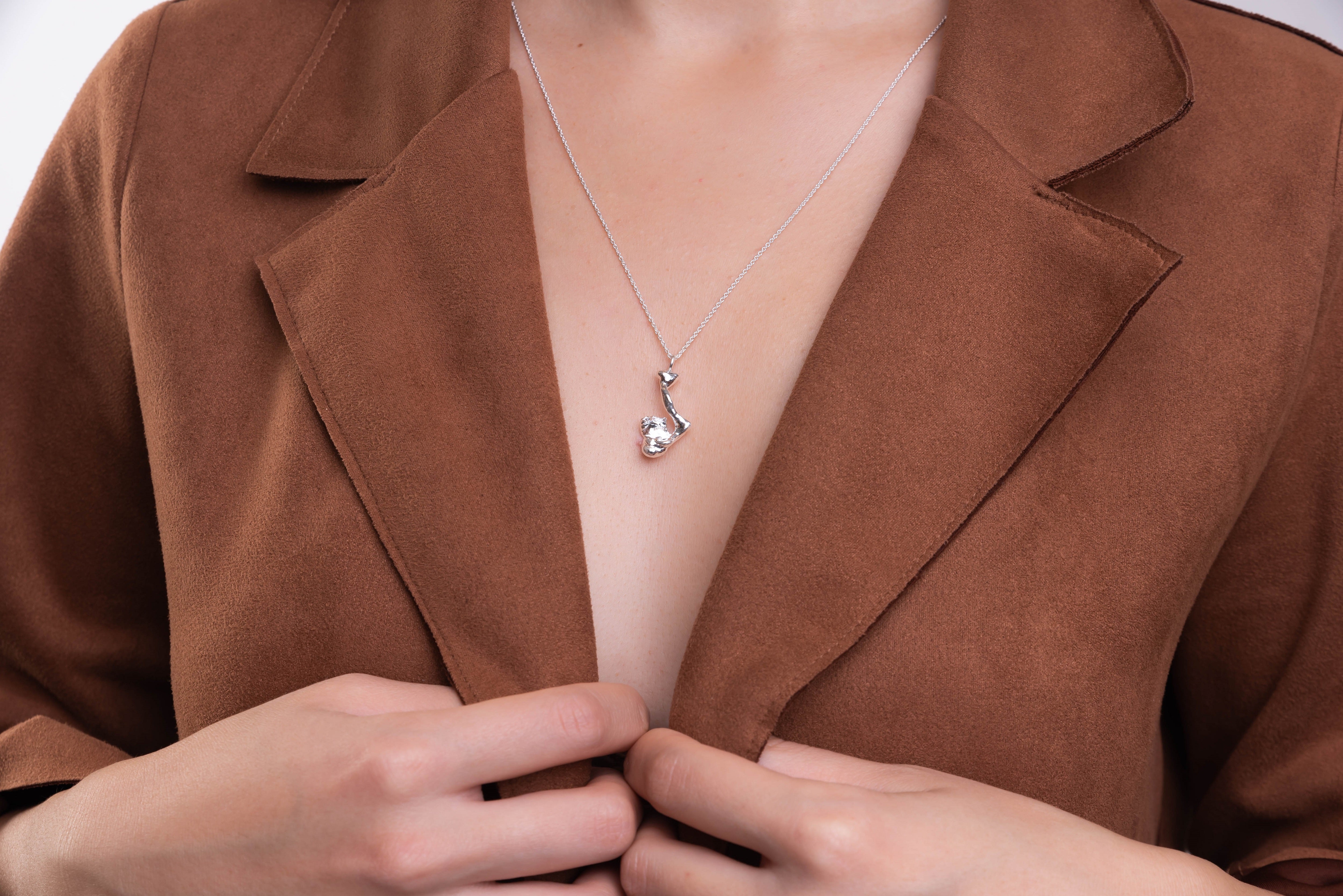 Harper er en enestående halskæde, der udmærker sig med sit eksklusive design og håndlavede vedhæng af vandstøbt finsølv og som kun findes i ét eksemplar. Vedhænget har en elegant, aflang form med bløde, runde kanter, som smukt hænger ned ad brystet og skaber et organisk og harmonisk udtryk.